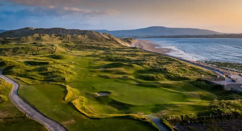 Strandhill Golf Club offers a thrilling links experience on Ireland’s Wild Atlantic Way, with undulating fairways, fast greens, and stunning views of Knocknarea Mountain and the Atlantic Ocean. This hidden gem challenges golfers of all levels while delivering a truly scenic and unforgettable round.