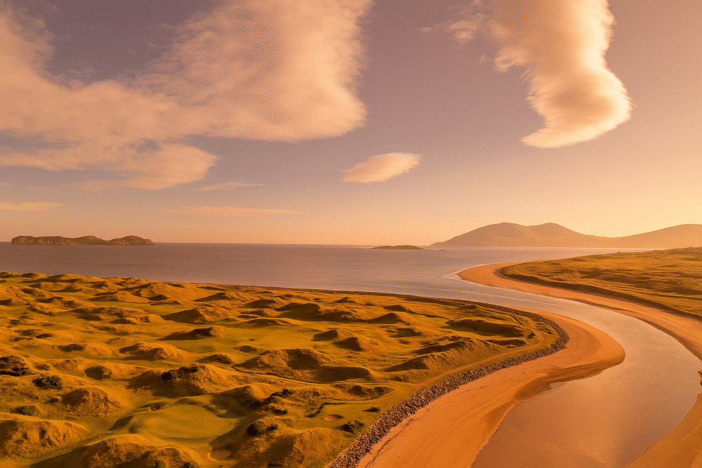 Your journey kicks off with the legendary Ballybunion “Old” course, a true test of links golf that has captivated and challenged golfers for generations. The adventure continues with a scenic drive around the Ring of Kerry to Waterville, a course that embodies the spirit of world-class links golf, set against the backdrop of Ireland’s stunning natural beauty.