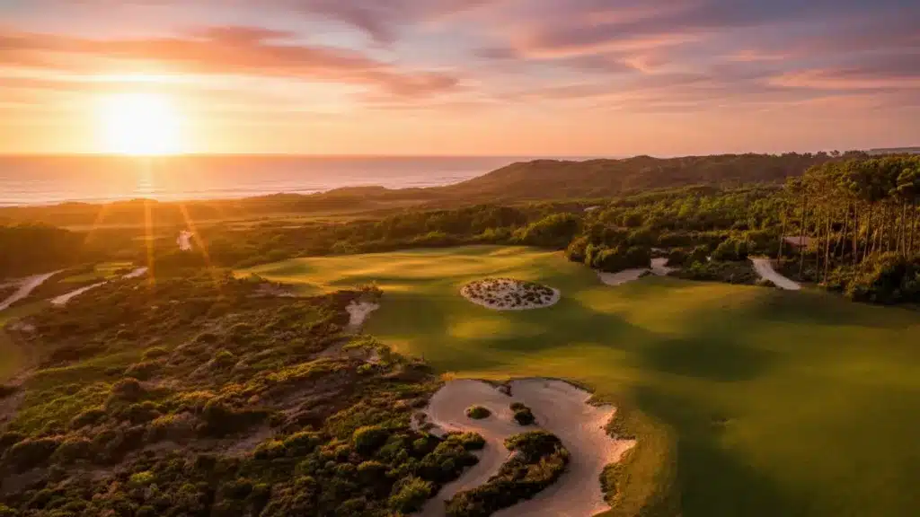 Continue south toward the enchanting hills of Sintra, a UNESCO World Heritage site known for its palaces, gardens, and romantic atmosphere. Play two of Portugal’s finest championship layouts — the Penha Longa Atlântico Course, blending history and elegance, and Oitavos Dunes, a world-renowned links experience overlooking the Atlantic. Between rounds, savor the charm of nearby Cascais and the serene beauty of Sintra’s forested landscapes.