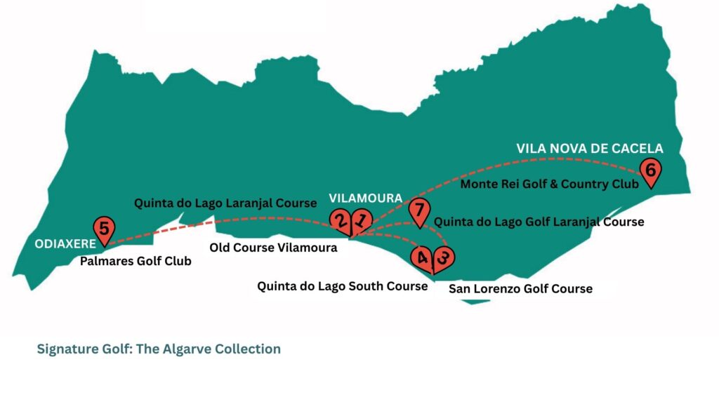 Embark on an unforgettable golfing journey through the Algarve, Portugal’s sun-drenched southern coast and a haven for world-class golf. Your tour begins at the legendary Dom Pedro Old Course, often referred to as the “Grande Dame” of Algarve golf. Nestled among majestic pine trees, its gently undulating fairways and classic parkland layout offer a serene yet challenging introduction to the region. Next, tee off at San Lorenzo Golf Course, consistently ranked among Europe’s finest. Set within the stunning Ria Formosa Nature Reserve, San Lorenzo combines natural beauty with a strategic layout that will test every club in your bag.